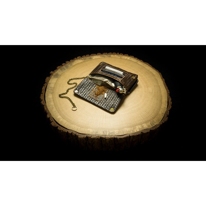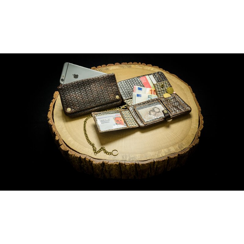 Das Tabak Portemonnaie (gross) „Woven Havana“ aus braunem Leder im Hosentaschenformat ist zeitlos, langlebig und vielseitig einsetzbar. Es eignet sich hervorragend für den klassischen Raucher und auch als außergewöhnliches Geschenk. Die Tabaktasche mit Blättchenhalter bietet Platz um Tabak, Blättchen, sowie Filter unterzubringen und gesichert mit Magnetknöpfen. Die Geldbörse bietet Platz für Kreditkarten, Geldscheine und Kleingeld und ist mit Druckknöpfen gesichert. Zu Letzt bietet es dir eine Handytasche. Alles findet seinen Platz, ist wohl durchdacht und Sie haben alles mit einem Griff alles zur Hand. Eine abnehmbare Messing Kette sichert das Portemonnaies vor fremden Zugriff.