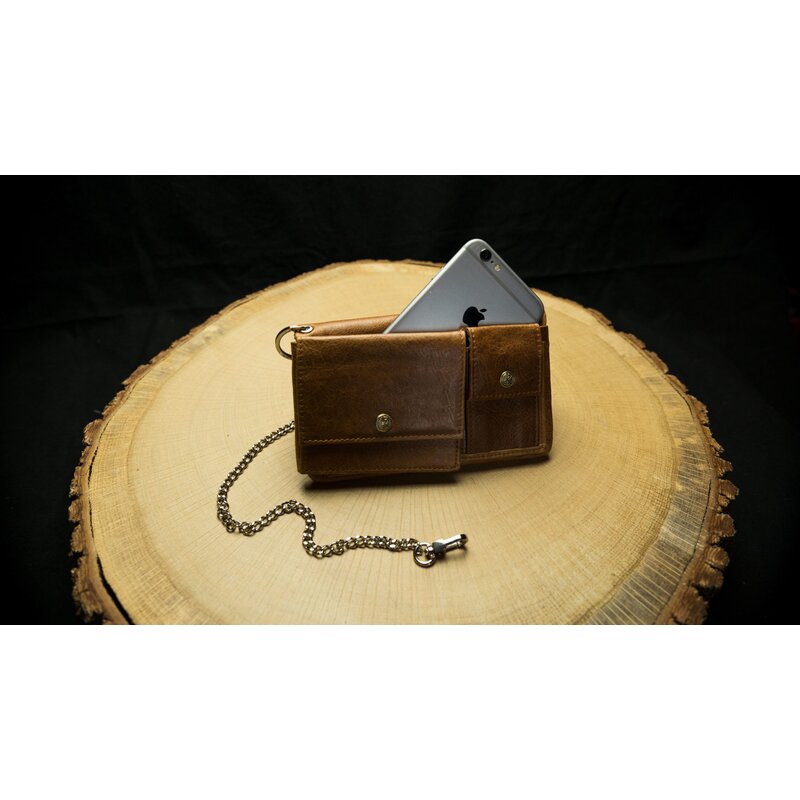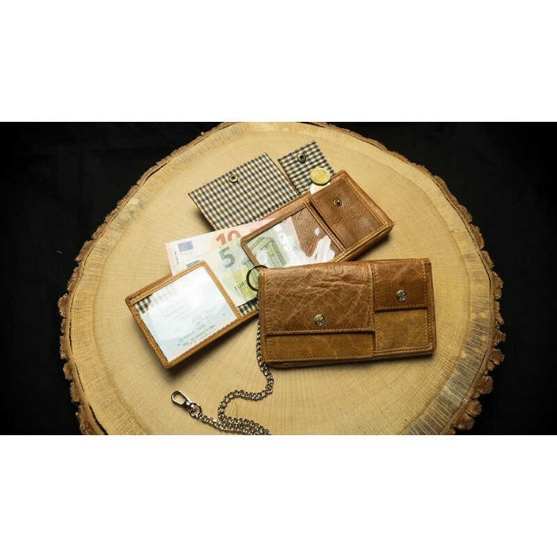 Das Tabak Portemonnaie (klein) „Tabba Classic“ aus braunem Leder im Hosentaschenformat ist zeitlos, langlebig und vielseitig einsetzbar. Es eignet sich hervorragend für den klassischen Raucher und auch als außergewöhnliches Geschenk. Die Tabaktasche mit Blättchenhalter bietet Platz um Tabak, Blättchen, sowie Filter unterzubringen und gesichert mit Magnetknöpfen. Die Geldbörse bietet Platz für Kreditkarten, Geldscheine und Kleingeld und ist mit Druckknöpfen gesichert. Zu Letzt bietet es dir eine Handytasche. Alles findet seinen Platz, ist wohl durchdacht und Sie haben alles mit einem Griff alles zur Hand. Eine abnehmbare Messing Kette sichert das Portemonnaies vor fremden Zugriff.