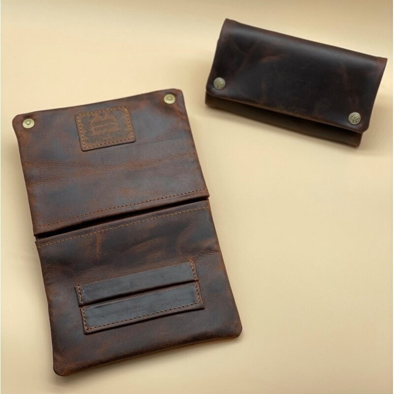 Die Tabak Tasche aus braunem Leder im Hosentaschenformat ist zeitlos, langlebig und vielseitig einsetzbar. Aus hochwertigen Materialien, hochwertig verarbeitet und mit Sorgfalt geprüfte Qualität. Sie eignet sich hervorragend für den klassischen Dreher und auch als außergewöhnliches Geschenk. Deine Tabak Tasche bietet Dir Platz für Blättchen mit Blättchenhalter, Filter, sowie Tabak und ist gesichert durch Magnetknöpfe. Das Leder ist robust, hält aber auch den Tabak natürlich feucht. Alles findet seinen Platz, ist wohl durchdacht und Du hast alles mit einem Griff zur Hand. Finde es heraus mit Deiner Original Kavatza.